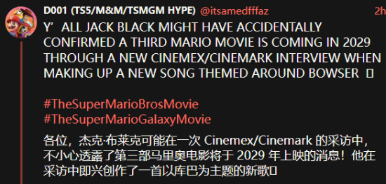 近日,在Cinemark的一次采访中,为库巴配音的演员杰克·布莱克意外透露,下一部《超级马力欧兄弟》大电影预计将在2029年与观众见面。该言论迅速在海外Reddit等社区引发热议。